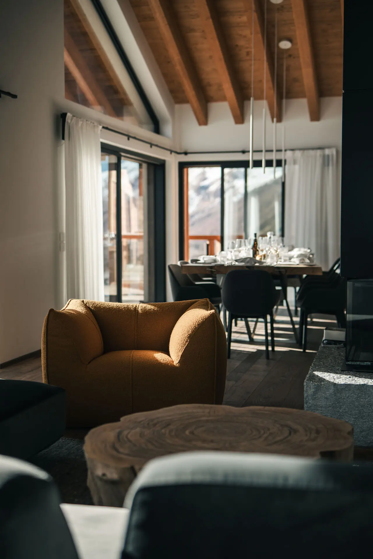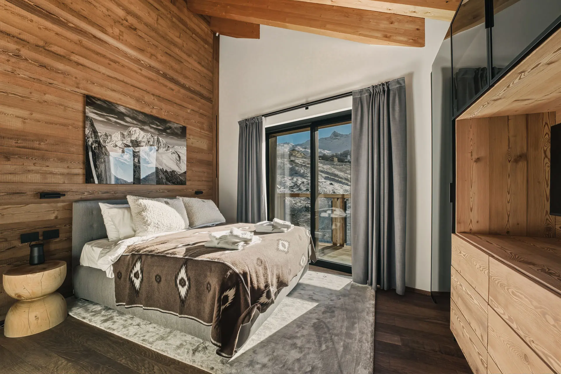 Inspired by the purity of vast open spaces, the Monte Rosa Suite blends raw textures and natural elegance, creating a cocoon where time feels suspended.